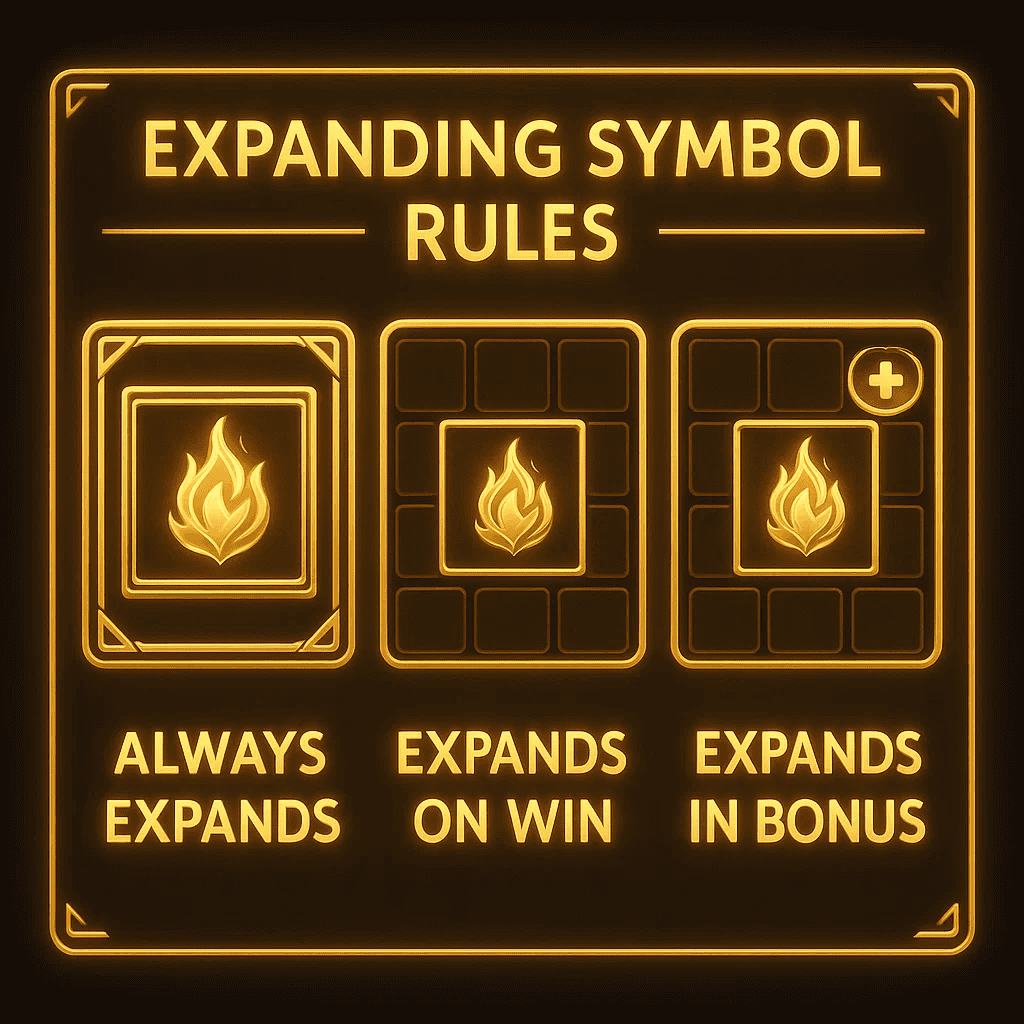 Laienduvad sümbolid on loodud katma kogu rullid (või suuremad alad) ja suurendama tugevate kombinatsioonide moodustumise võimalust, mida paljud juhendid kirjeldavad kui võidu saavutamise võtmetegurit. Need ei taga tulemusi, kuid nad kompresseerivad väärtuse äkilisteks tõusudeks, mistõttu need tunduvad sageli võimsad ja volatiilsed. Õpi esmalt laiendamise reeglid ja vali seejärel panus, mis sobib funktsiooni kõikuva iseloomuga.