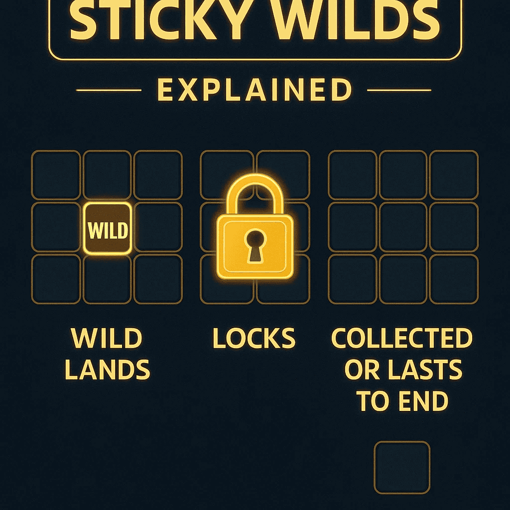 Sticky wilds on wild-sümbolid, mis jäävad lukustatuks mitme keerutuse jooksul, ja mõned tasuta keerutuste kirjeldused märgivad, et need võivad jääda rullidel blokeerituks kuni kogumiseni või kuni viimase tasuta keerutuseni. Need võivad oluliselt suurendada võiduvõimalusi, luues püsivad „ühendused”, kuid need suurendavad ka volatiilsust, kuna tugevad seadistused on haruldased ja väga mõjukad. Õppige esmalt lukustamise ja kogumise reeglid ning saate aru sticky wilds-funktsioonide tegelikust riskiprofiilist.
